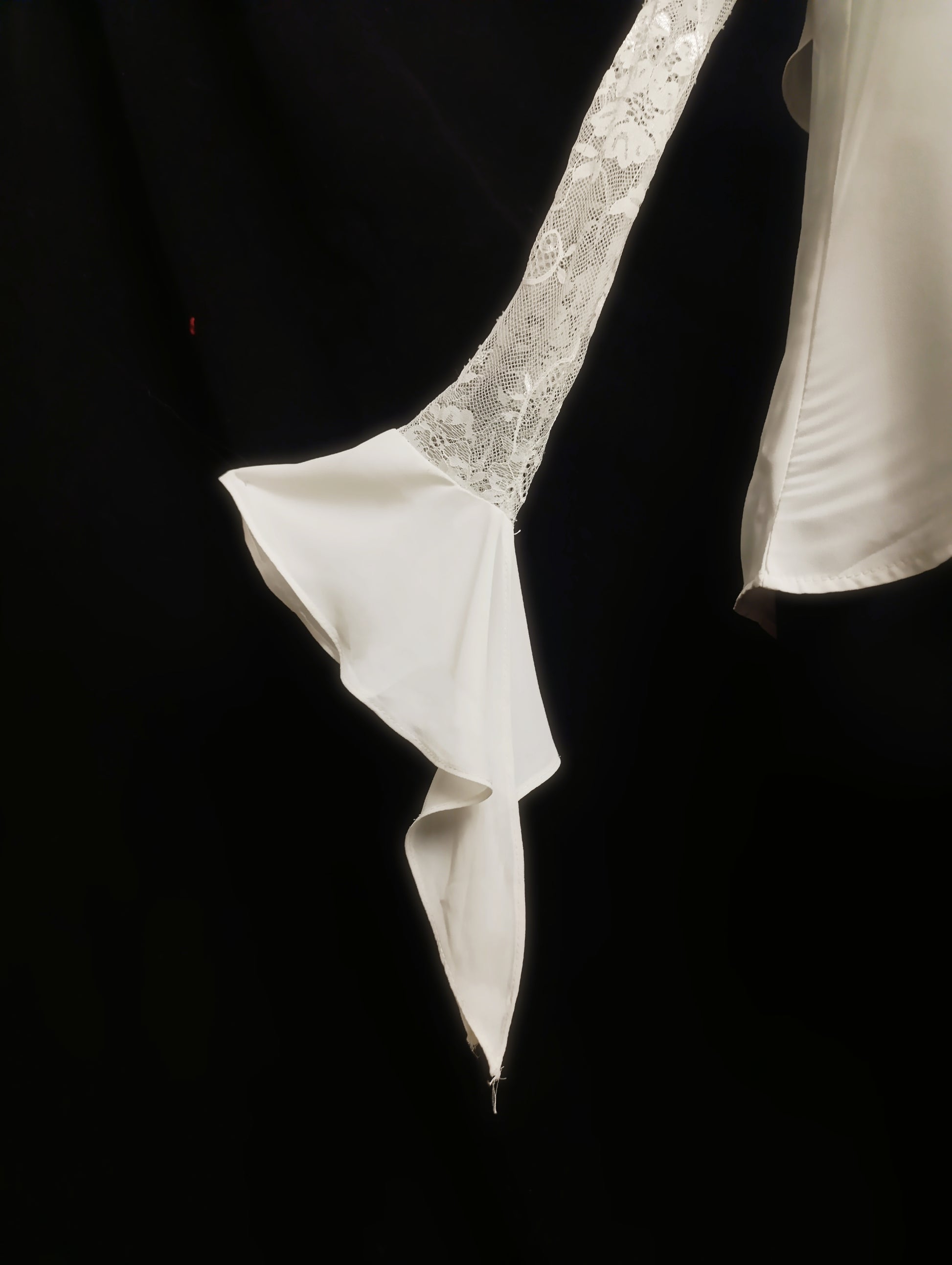 Elegancka bluzka z falbaną na dekolcie, szerokimi rękawami i elementami koronki ⊹₊⟡⋆