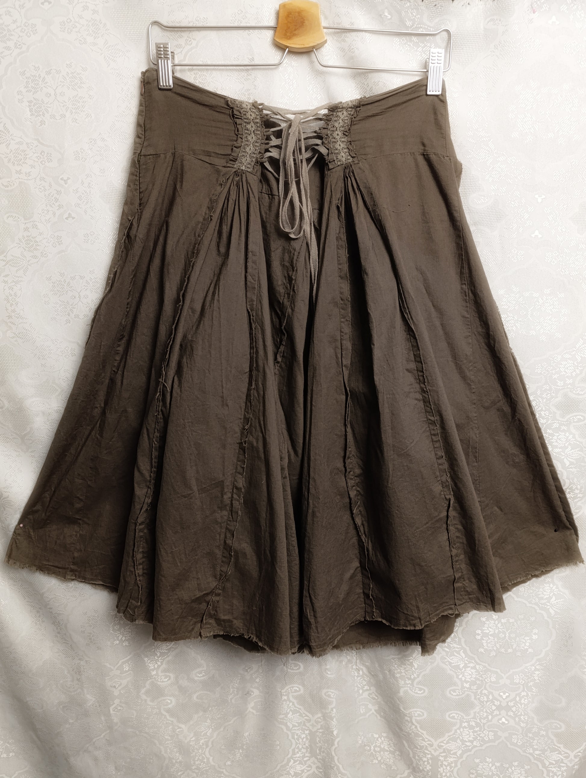 Vintage spódnica midi z gorsetowym wiązaniem i ozdobną koronką, z celowo pozostawionymi, poszarpanymi krawędziami materiału, we wróżkowym stylu ˚ʚ♡ɞ˚