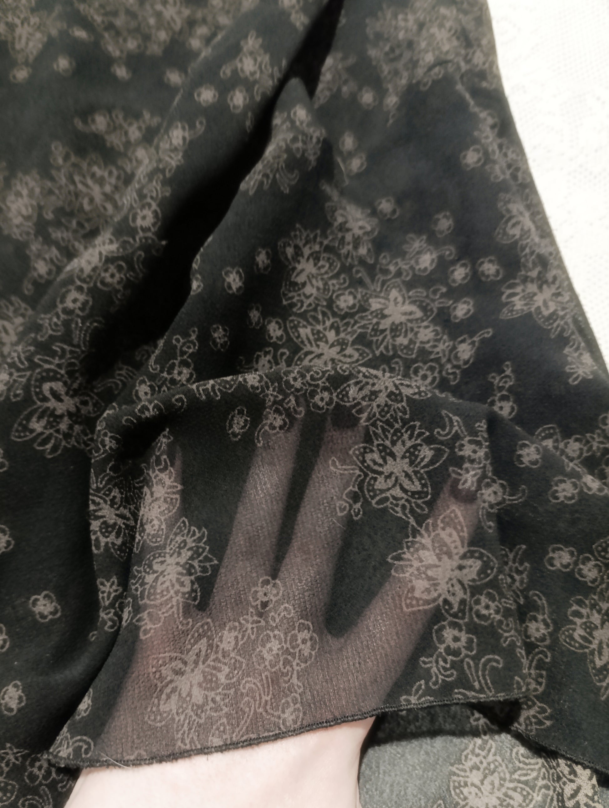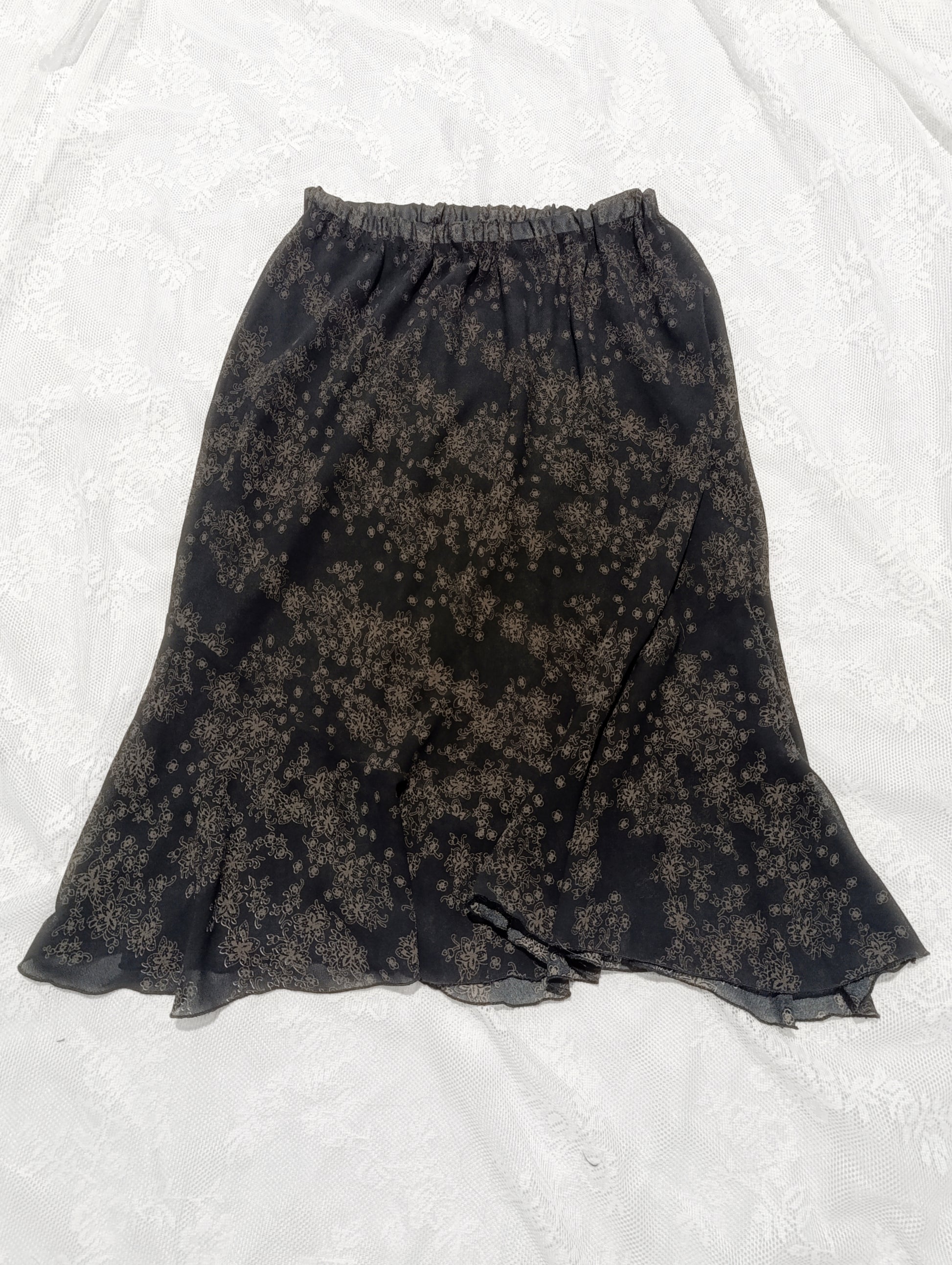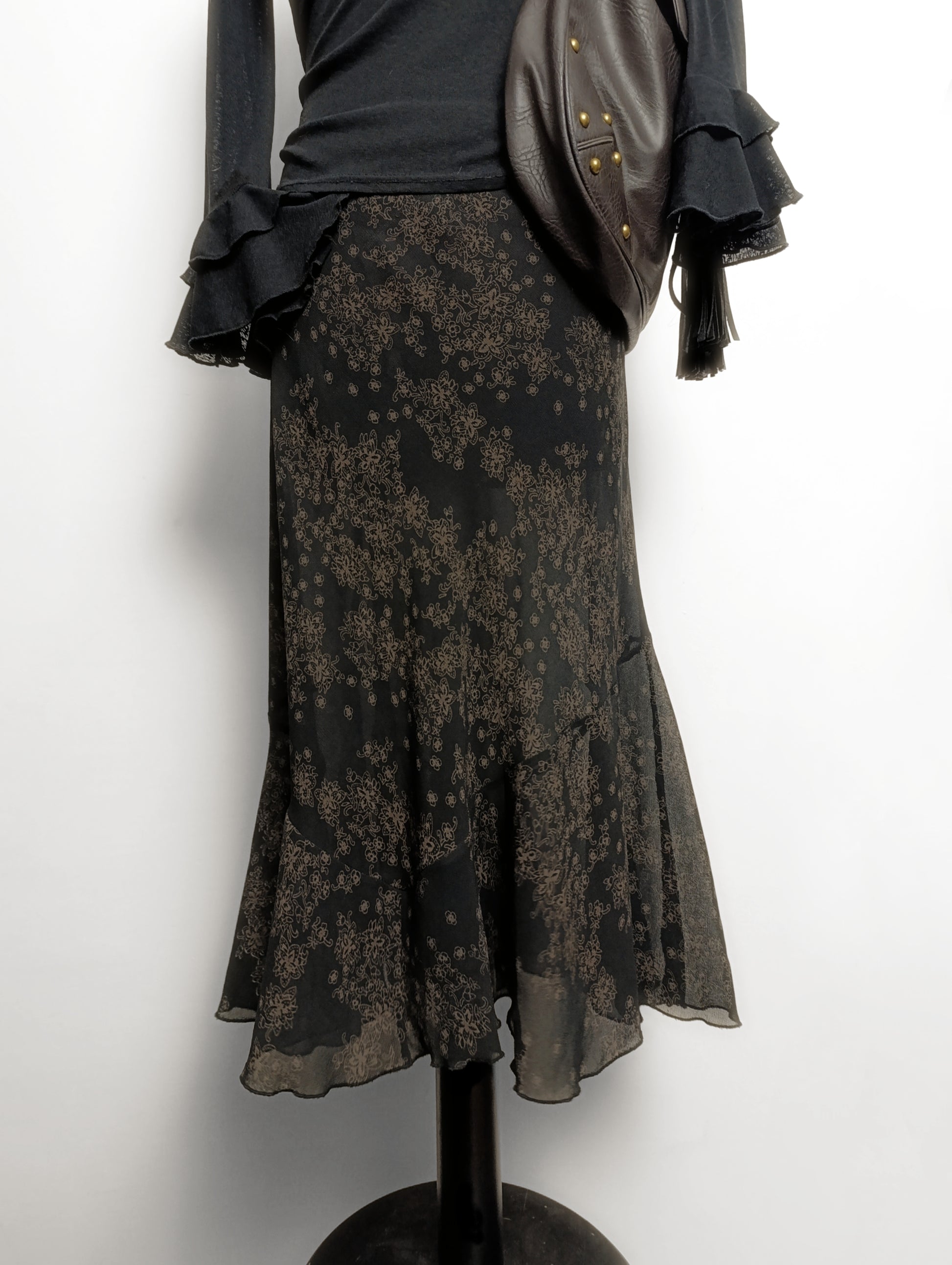 Asymetryczna półprzezroczysta spódnica w roślinny wzór w odcieniach czerni i brązu ✟