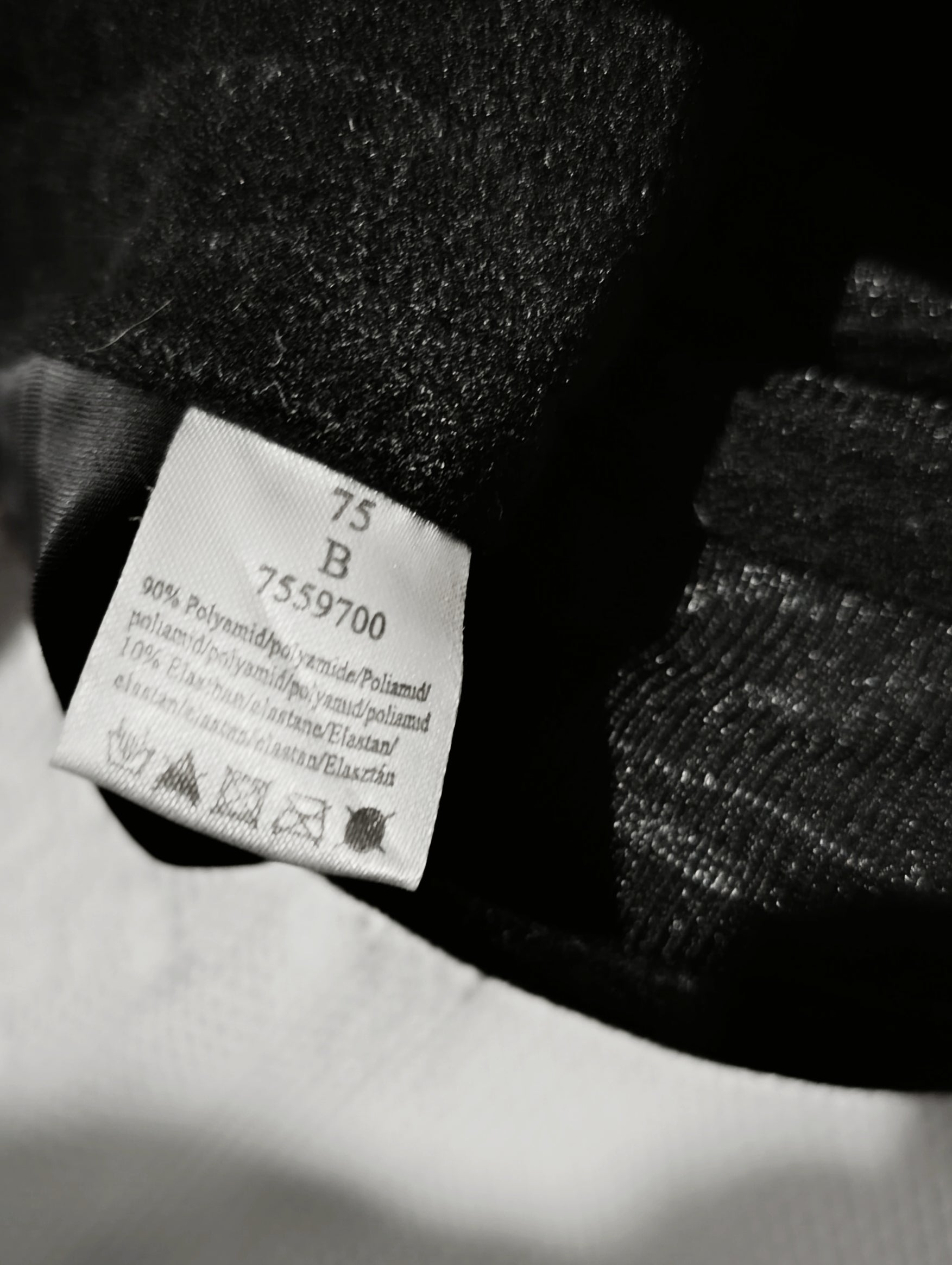 wady: wygięte fiszbiny, ślad po dawnym przyszyciu na ramiączkach