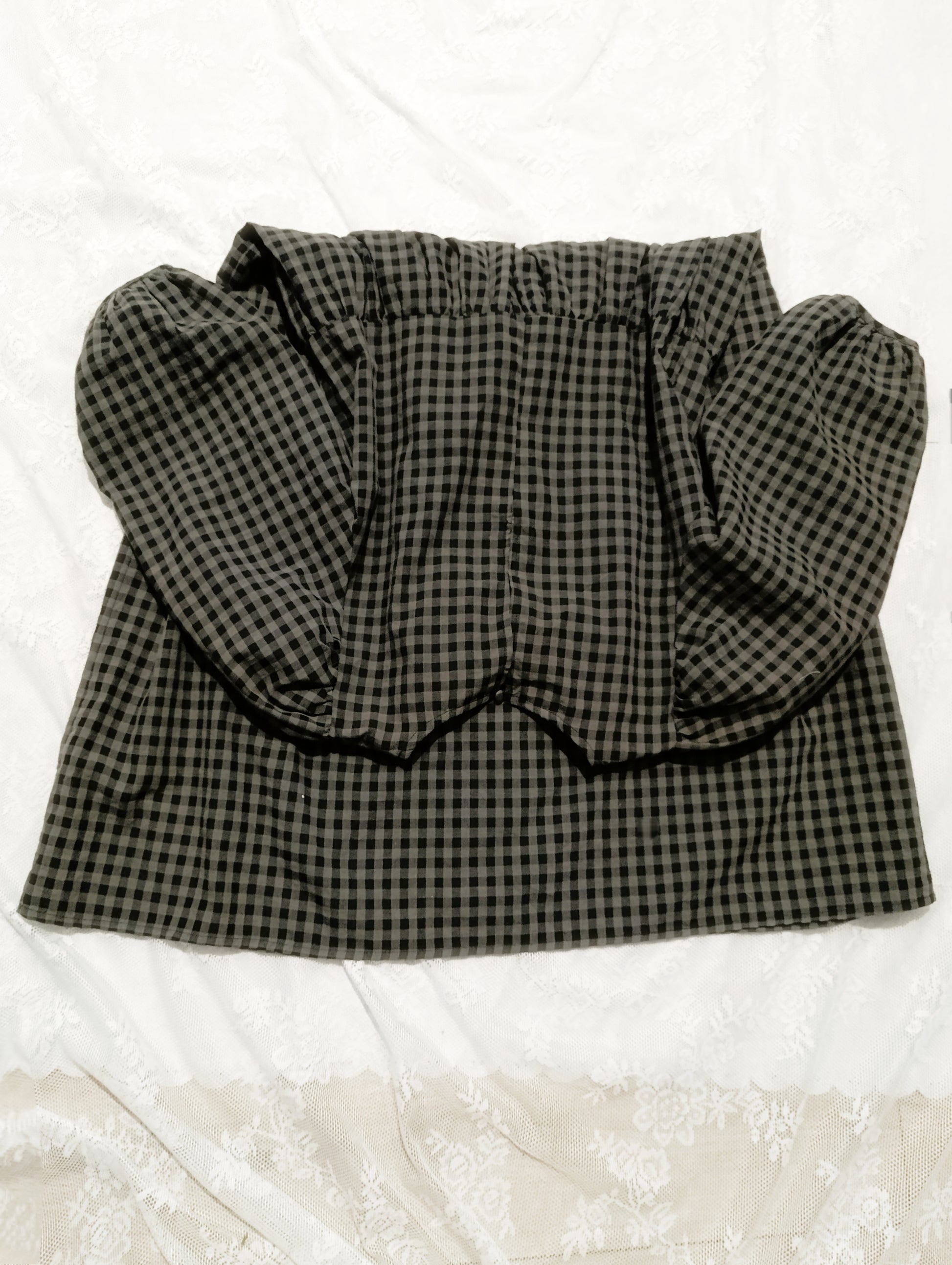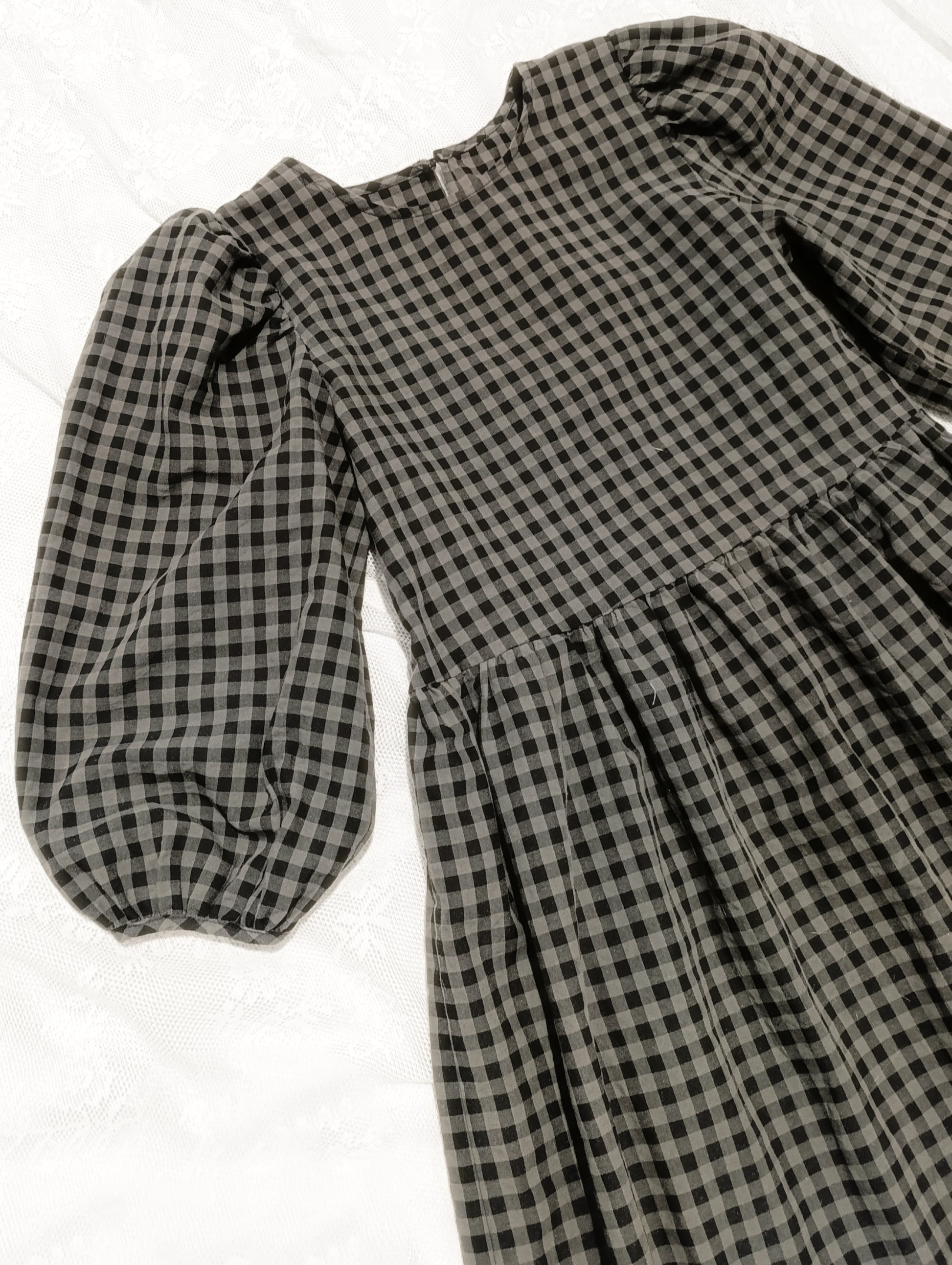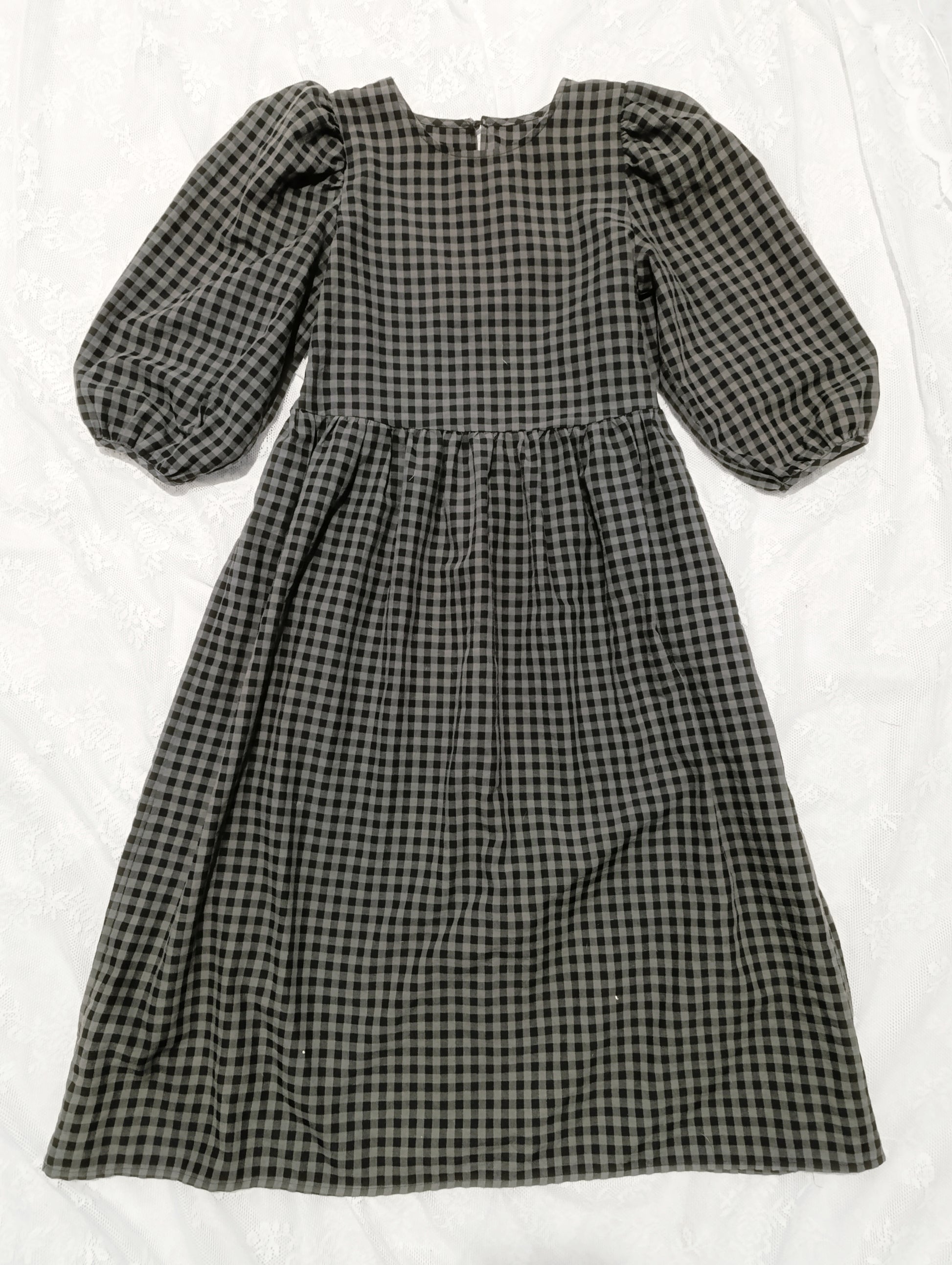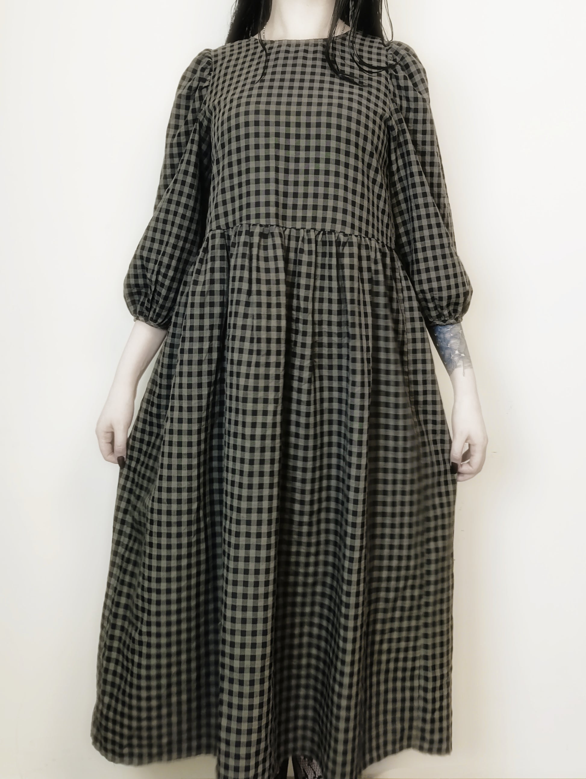 Sukienka w kratkę z bufiastymi rękawami, midi, oversize krój 𓆩♱𓆪